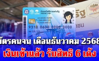 บัตรคนจน เดือนธันวาคม 2568 เงินเข้าแล้ว มีเงินพิเศษ ได้ทุกคน รับสิทธิ 6 เด้ง 01/12/202501/12/2025 บัตรคนจน เดือนธันวาคม 2568 เงินเข้าแล้ว มีเงินพิเศษ ได้ทุกคน รับสิทธิ 6 เด้ง Read More
