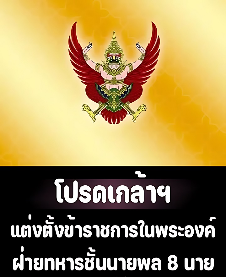 เว็บไซต์ราชกิจจานุเบกษา เผยแพร่ประกาศ แต่งตั้งข้าราชการในพระองค์ฝ่ายทหารชั้นนายพล