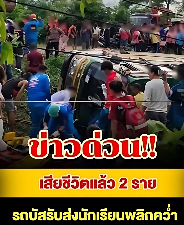 ภาพอุบัติเหตุรถนักเรียนพลิกคว่ำบริเวณ ถนนบ้านห้วยคอม – นาทม อ.เซกา จ.บึงกาฬ