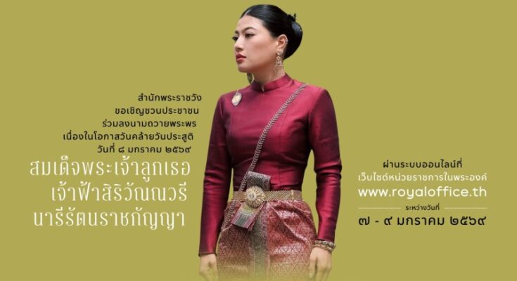 ประกาศสำนักพระราชวัง ขอเชิญชวนประชาชนร่วมลงนามถวายพระพร สมเด็จพระเจ้าลูกเธอ เจ้าฟ้าสิริวัณณวรี