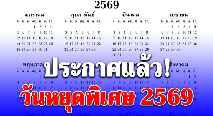 ประกาศแล้ว วันหยุดพิเศษ 2569
