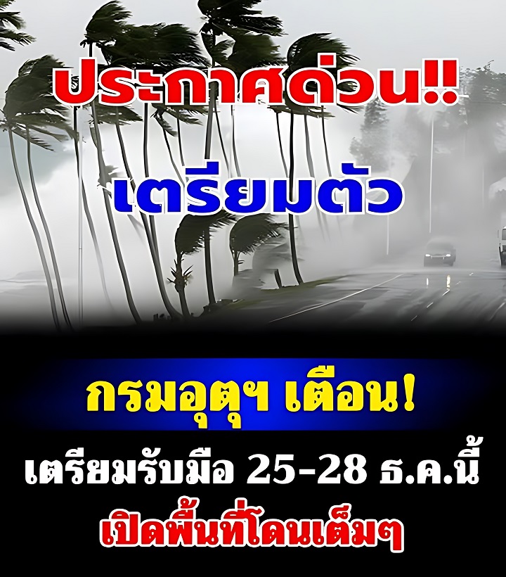 อนึ่ง ในช่วงวันที่ 25-28 ธ.ค. 68 ภาคใต้จะมีฝนเพิ่มขึ้นและมีฝนตกหนักถึงหนักมากบางแห่งทางตอนล่างของภาค เนื่องจากมรสุมตะวันออกเฉียงเหนือที่พัดปกคลุมบริเวณอ่าวไทย ภาคใต้ และทะเลอันดามันจะมีกำลังแรงขึ้น ขอให้ประชาชนบริเวณภาคใต้ตอนล่างระวังอันตรายจากฝนตกหนักถึงหนักมากและฝนที่ตกสะสม