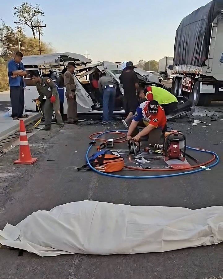 อุบัติเหตุรถปิคอัพ+รถบรรทุกพ่วง บริเวณ เส้นทางทรายมูล-โคกยาว ถ.วารีราชเดช ต.ทรายมูล อ.ทรายมูล จ.ยโสธร ผู้บาดเจ็บติดภายในรถปิคอัพ ยืนยันเสียชีวิตภายในรถ ดำเนินการใช้อุปกรณ์ตัดถ่างนำร่างผู้เสียชีวิตออกจากตัวรถ