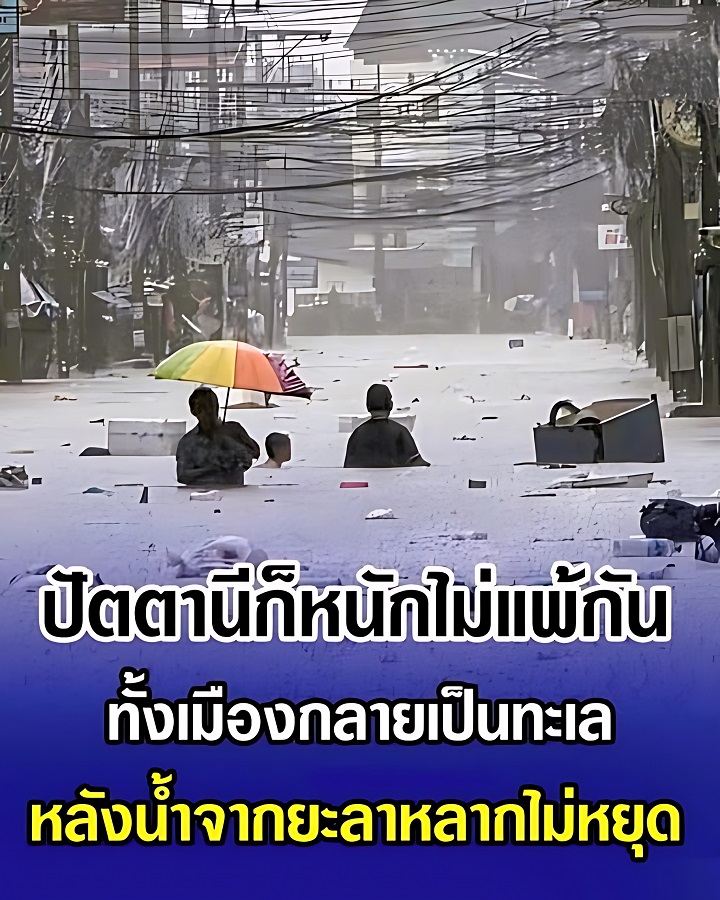 แม้วันนี้ปริมาณฝนจะเริ่มเบาบางลง แต่สถานการณ์ในเขตเทศบาลเมืองปัตตานี ซึ่งเป็นหัวใจเศรษฐกิจของจังหวัด ยังคงวิกฤตหนัก น้ำจากแม่น้ำปัตตานีพังแนวป้องกันก่อนทะลักเข้าท่วมถนนแทบทุกเส้น ทั้งถนนพิพิธ กะลาพอ ฤาดี ปรีดา อุดมวิถี รามโกมุท ยะรัง นาเกลือ และปัตตานีภิรมย์ เมืองทั้งเมืองกลายเป็นเกาะกลางน้ำ ระดับน้ำสูงเฉลี่ย 40–50 ซม. รถเล็กหมดสิทธิ์สัญจร
