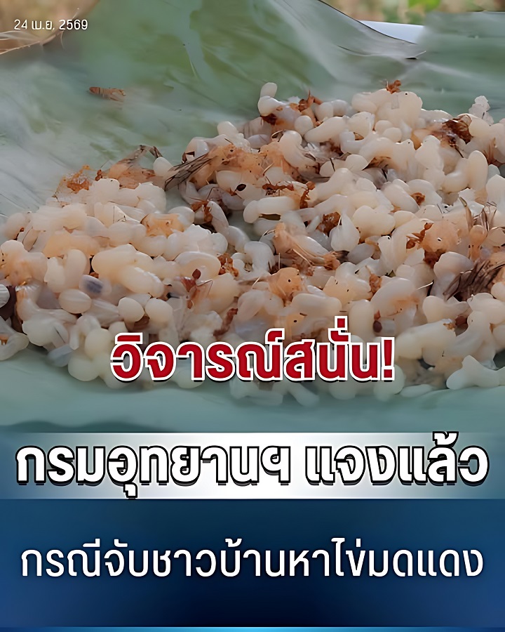 วันที่ 24 เมษายน 2569 กรมอุทยานแห่งชาติ สัตว์ป่า และพันธุ์พืช โพสต์ชี้แจงกรณีจับกุมชาวบ้านหาไข่มดแดงในพื้นที่ อุทยานแห่งชาติศรีน่าน จังหวัดน่าน ย้ำชัดเป็นมาตรการช่วงปิดป่าเพื่อควบคุมวิกฤตไฟป่า พร้อมยืนยันช่วงปกติเปิดโอกาสให้ชุมชนใช้ประโยชน์จากป่าได้ตามระเบียบ