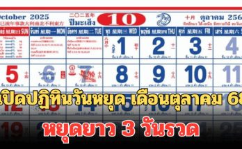 เปิดปฏิทินวันหยุด เดือนตุลาคม 68 หยุดยาว 3 วันรวด Read More
